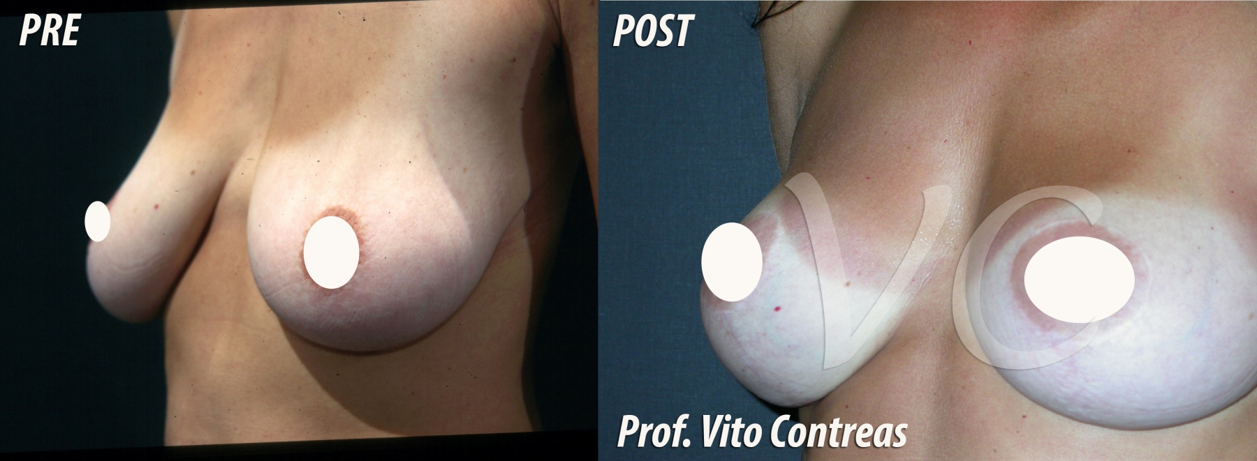 Va considerato che, mentre nelle tecniche più invasive il cono mammario risulta addirittura più proiettato, le procedure più semplici di lifting areolare sono sempre seguite da un certo appiattimento dell’apice mammario.